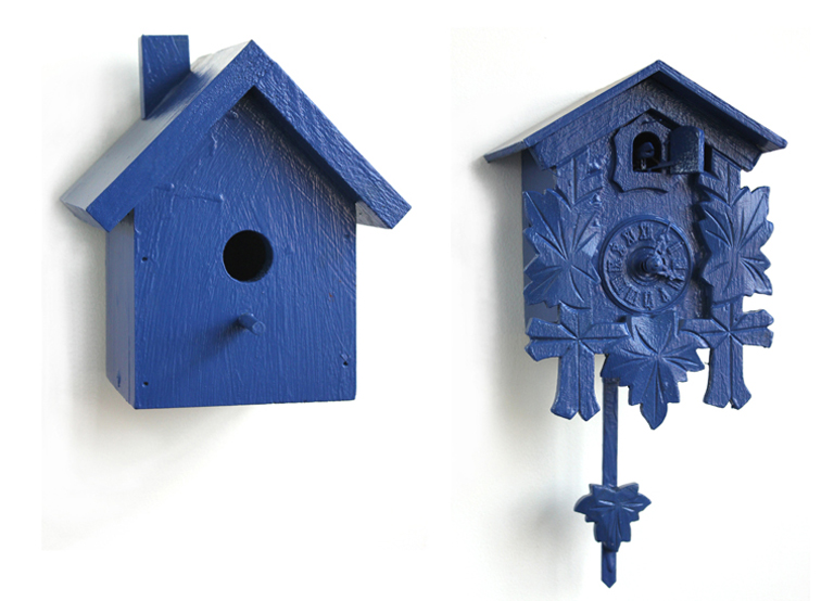 Birdhouse, coo-coo clock, blue paint