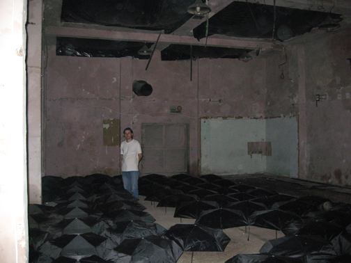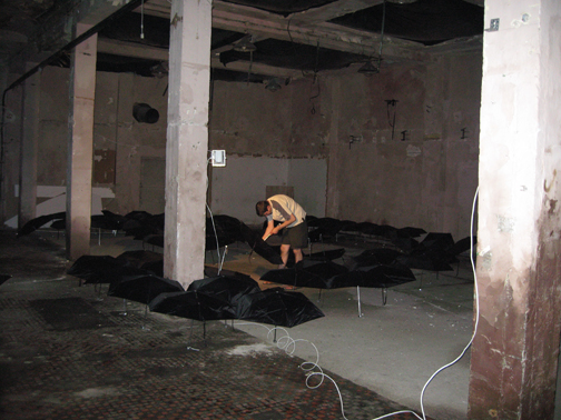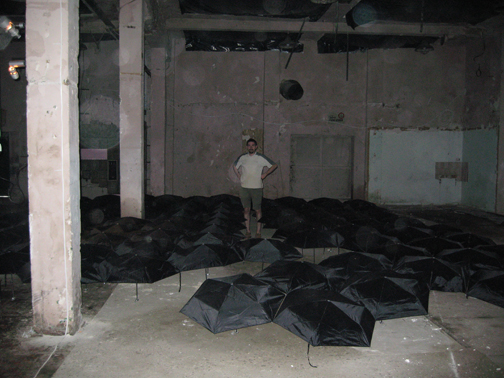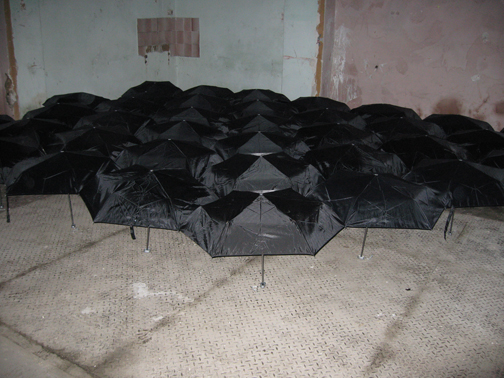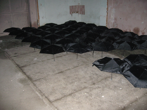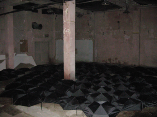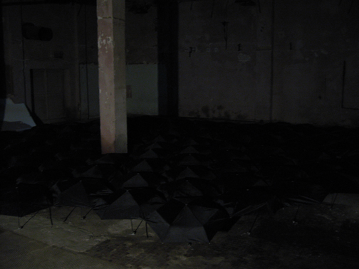 Swiatlo powinno byc rozproszona struzka, niezbyt ostra i nie nazbyt teatralna - bardziej piwniczna, moze troche zoltawa. Parasole powinny niemal sprawiac wrazenie halucynacyjnego tworu sennego. Duza czesc instalacji powinna znalezc sie w mroku, dzieki czemu moze byc uzyskane wrazenie nieskonczonosci konstrukci.